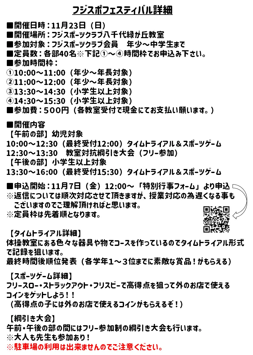 フジスポフェスティバルが申し込み開始となり第3部と第4部が定員となっております。