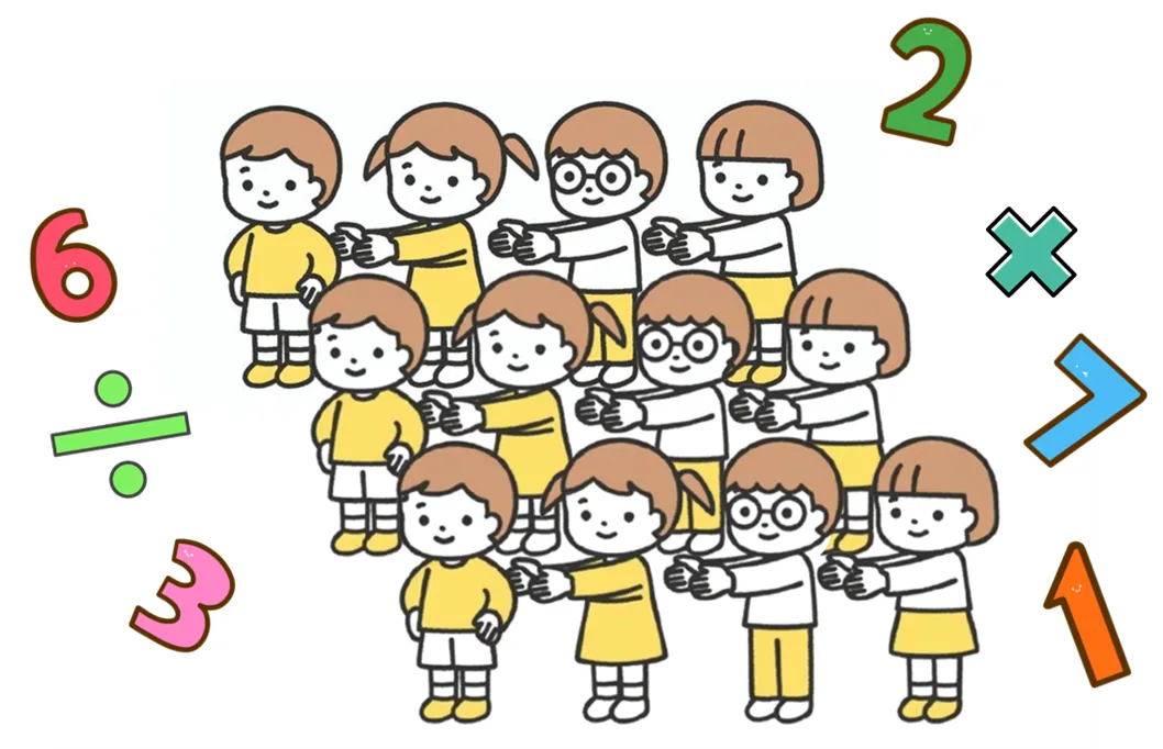 ●『均等な人数で3列作ってくださ~い!』➔何人ずつで3列になるか割り算を無意識に始めます。
